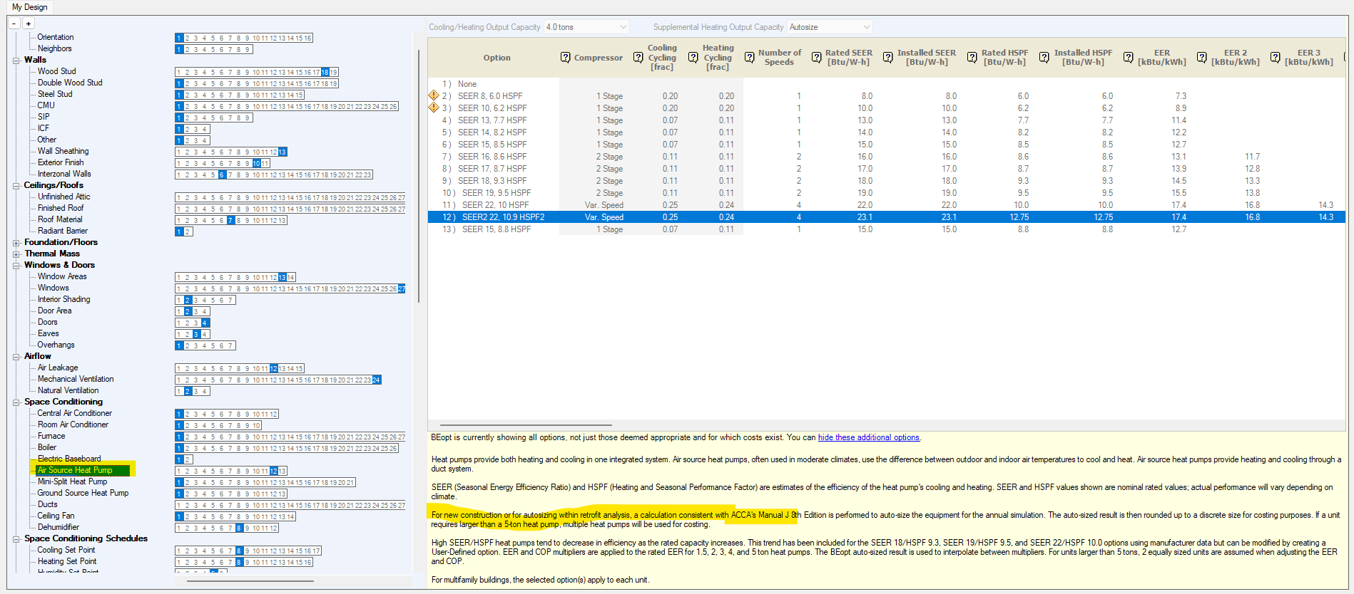 BeOpt - New Construction ACCA Manual J HP Autosizing