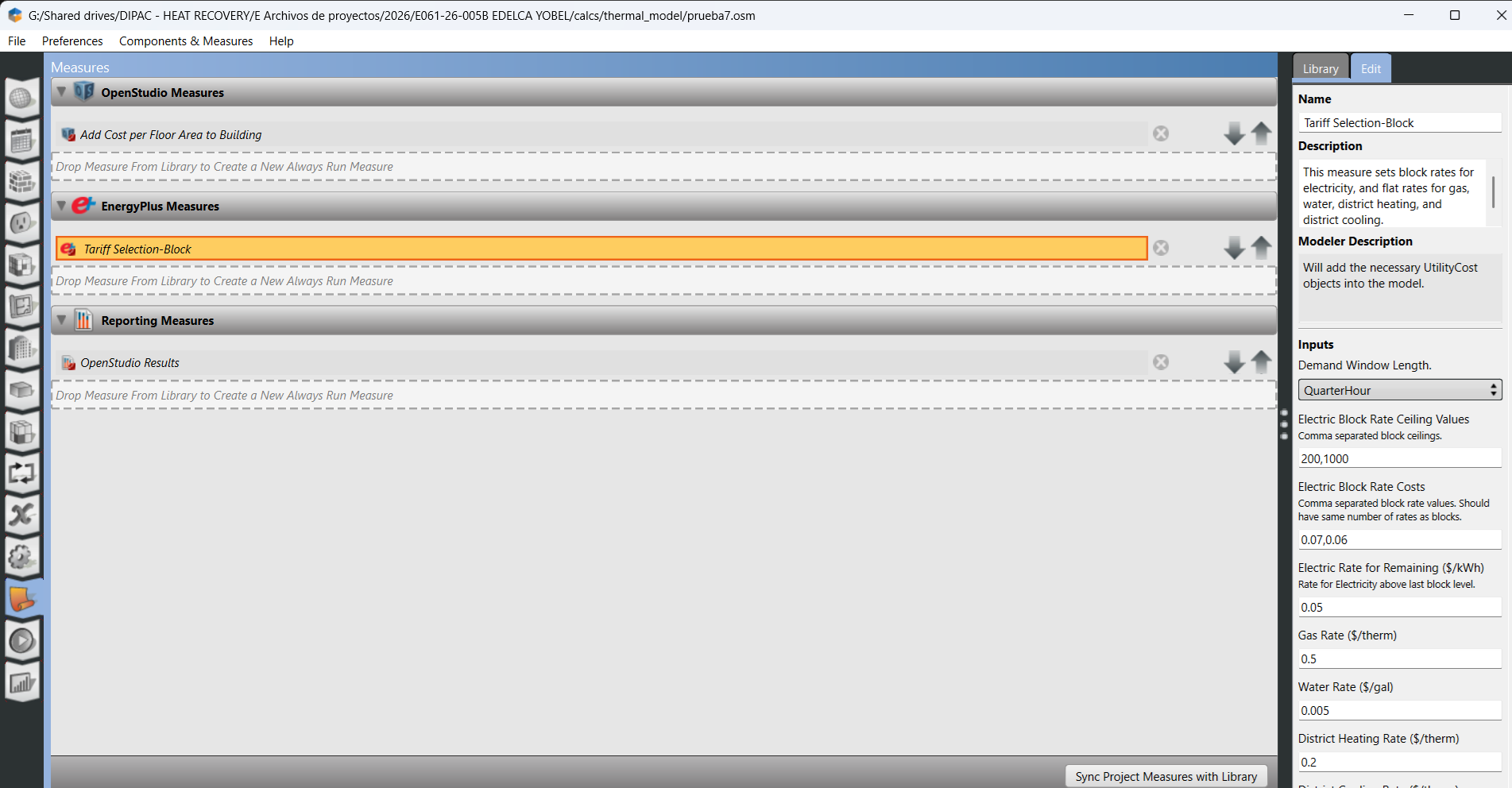 Hi everyone, I’m studying how to implement Life Cycle Cost (LCC) in OpenStudio Application. Based on the documentation, I understand that LifeCycleCosts and Utility Bills cannot be directly assigned through the graphical interface, so I used the measures “Add Cost per Floor Area to Building” and “Tariff Selection – Block” to implement them and evaluate the results.